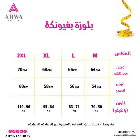 - الخامة: بلوزة فيونكة مصنوعة من خامة الكريب رويال.