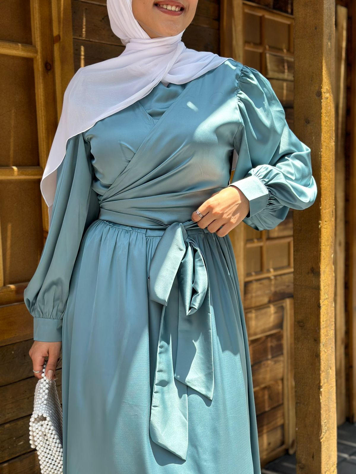 .الخامة: فستان مصنوع من خامة الستان السادة.