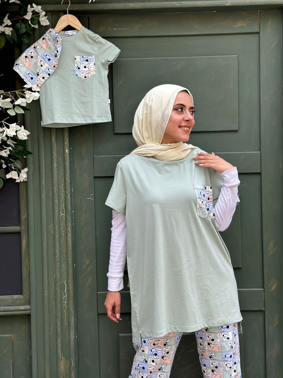 - وصف المنتج: بيجامة مكونة من قطعتين شورت مطبوع وتيشرت سادة به جيب مطبوع.