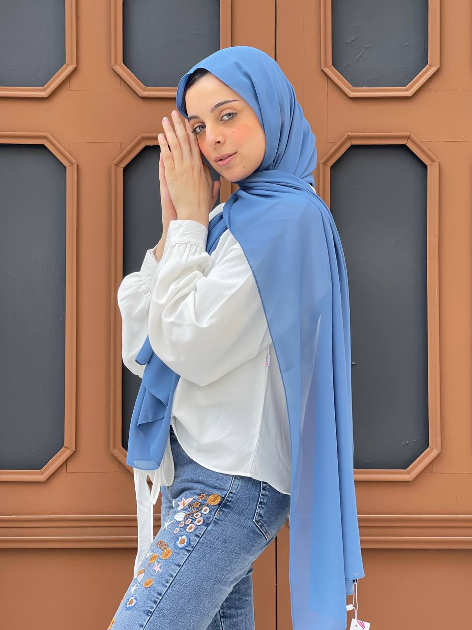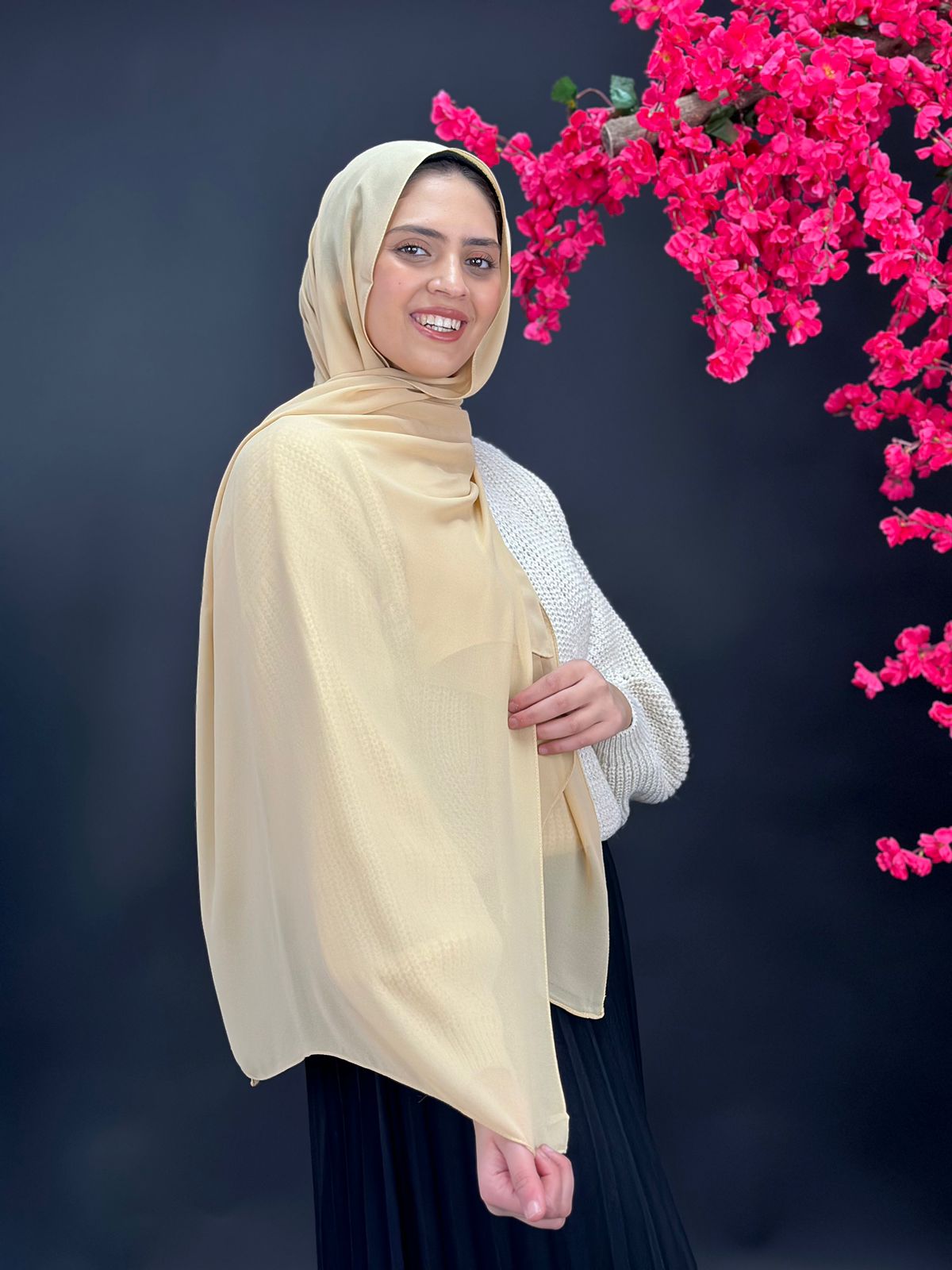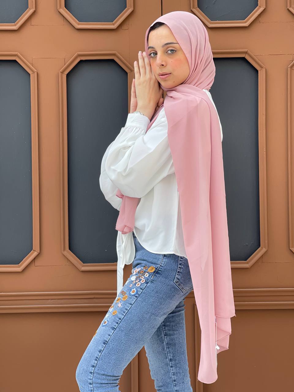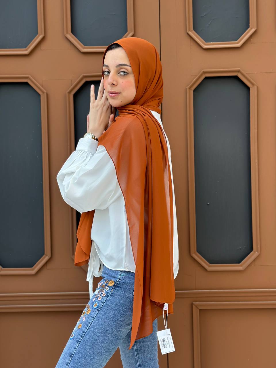 - الخامة: طرحة مصنوعة من خامة الشيفون.