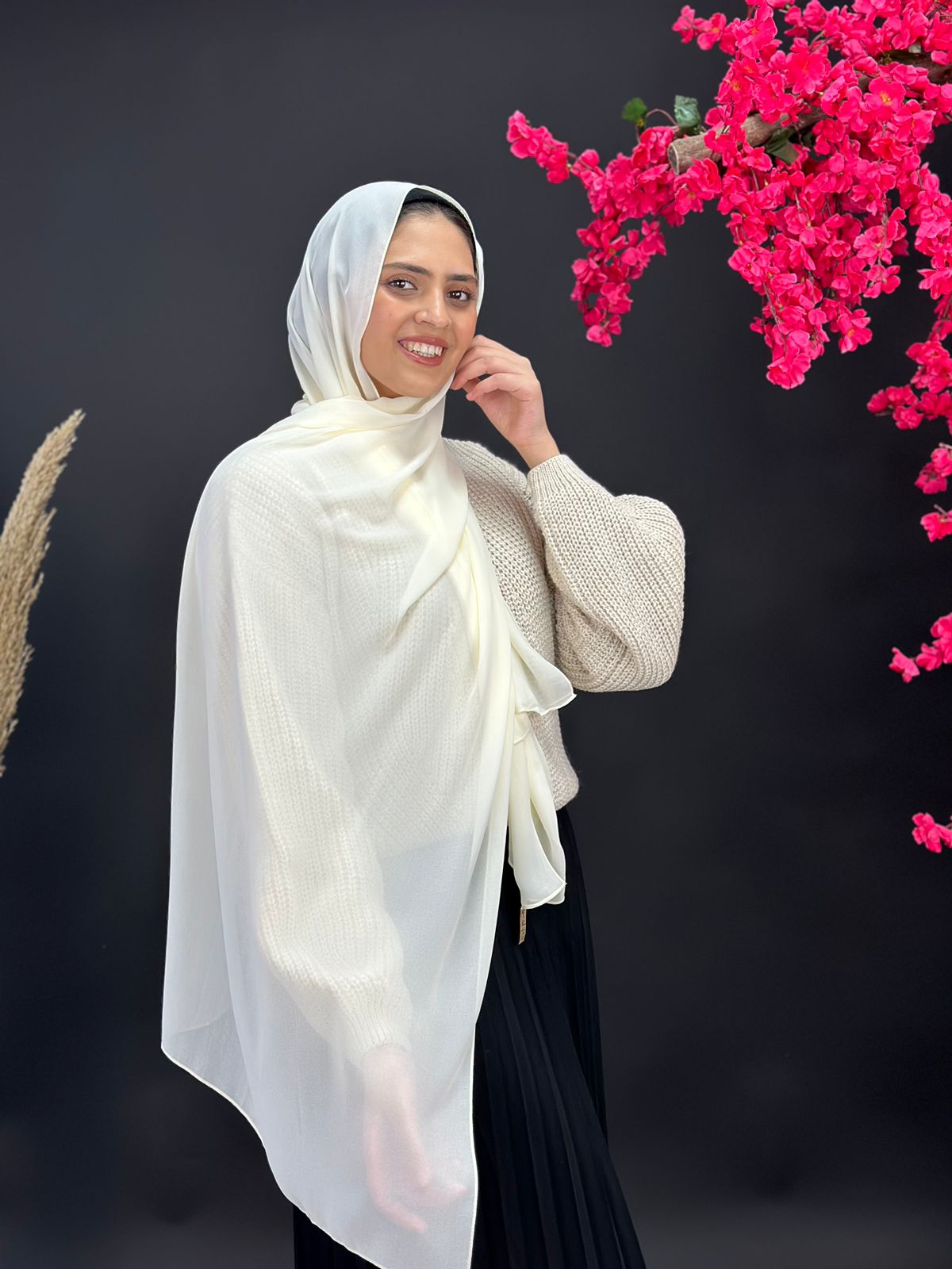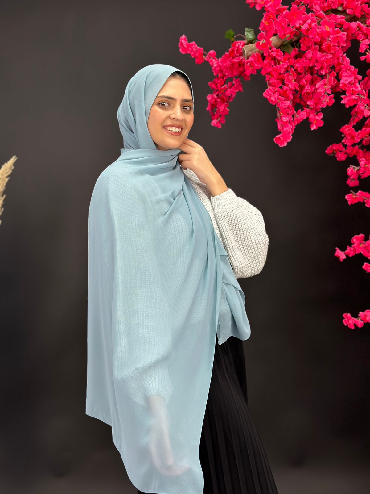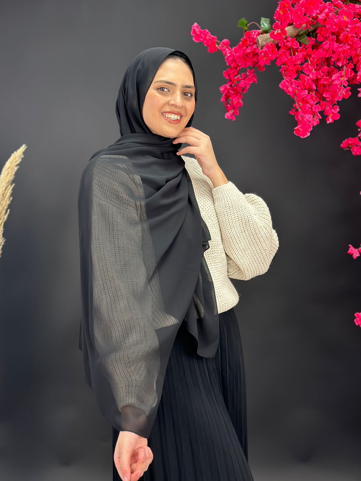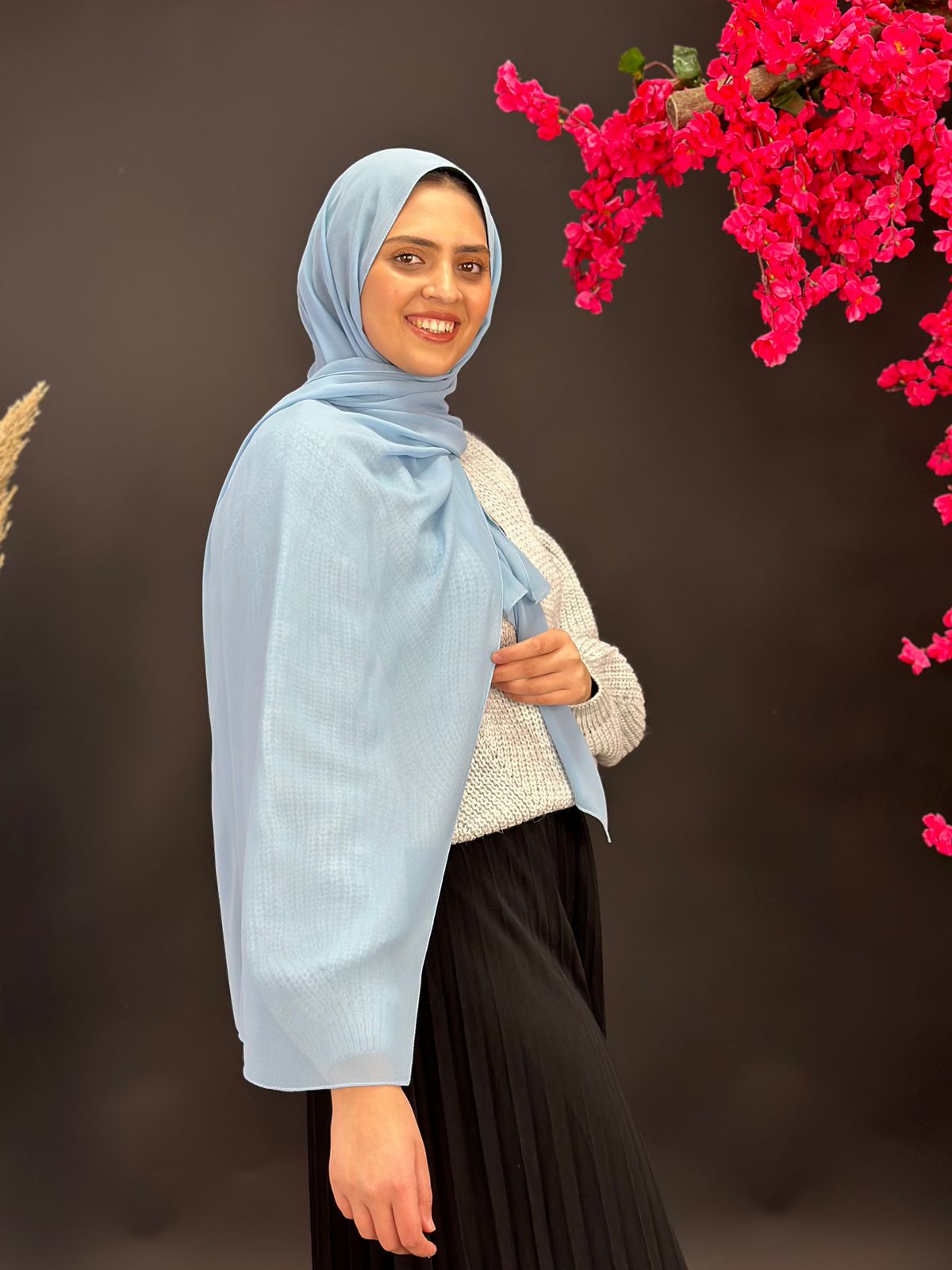 - الخامة: طرحة مصنوعة من خامة الشيفون.