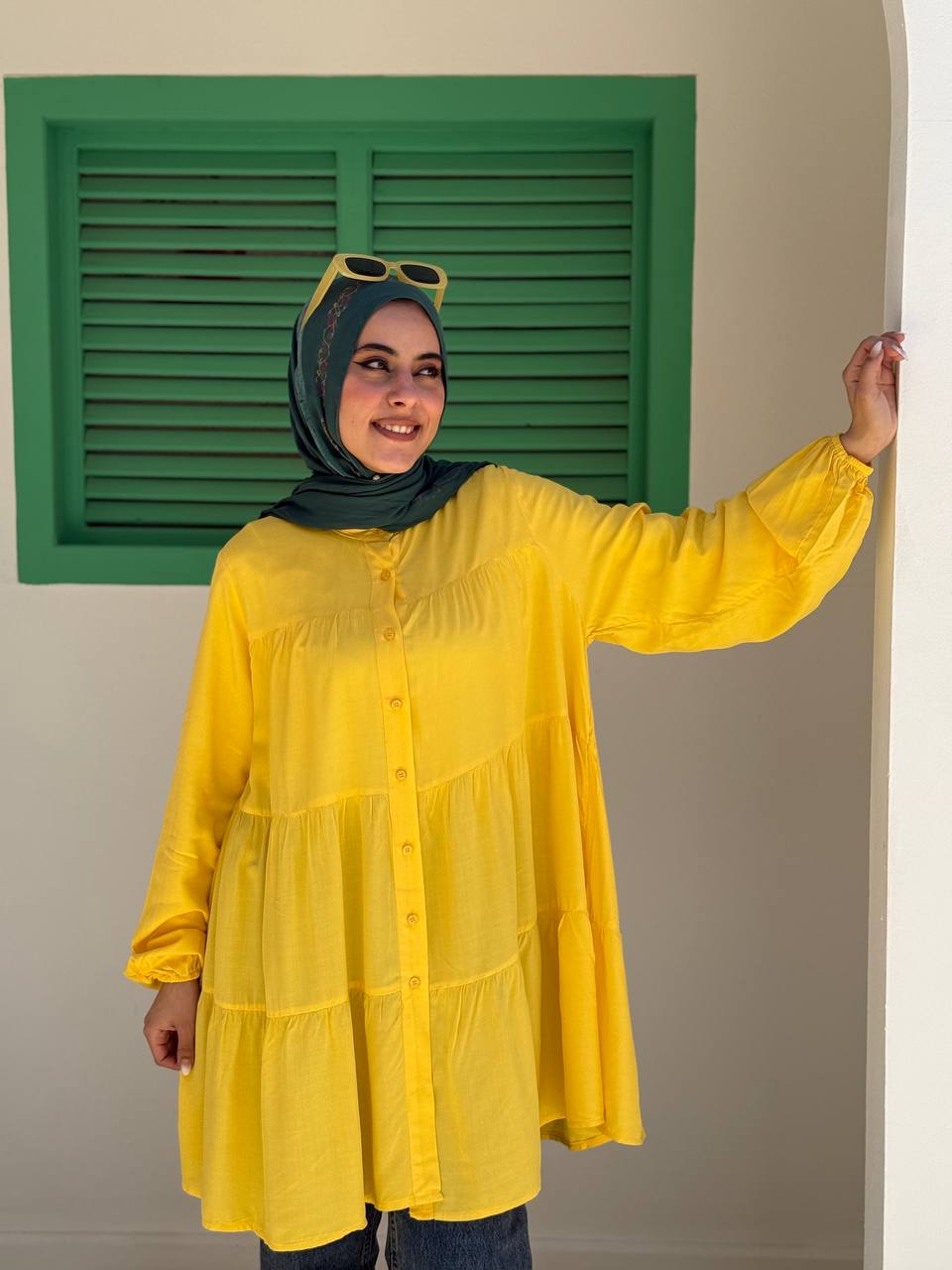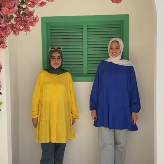 - وصف المنتج: شميز مدرج مزود بزراير أمامية.