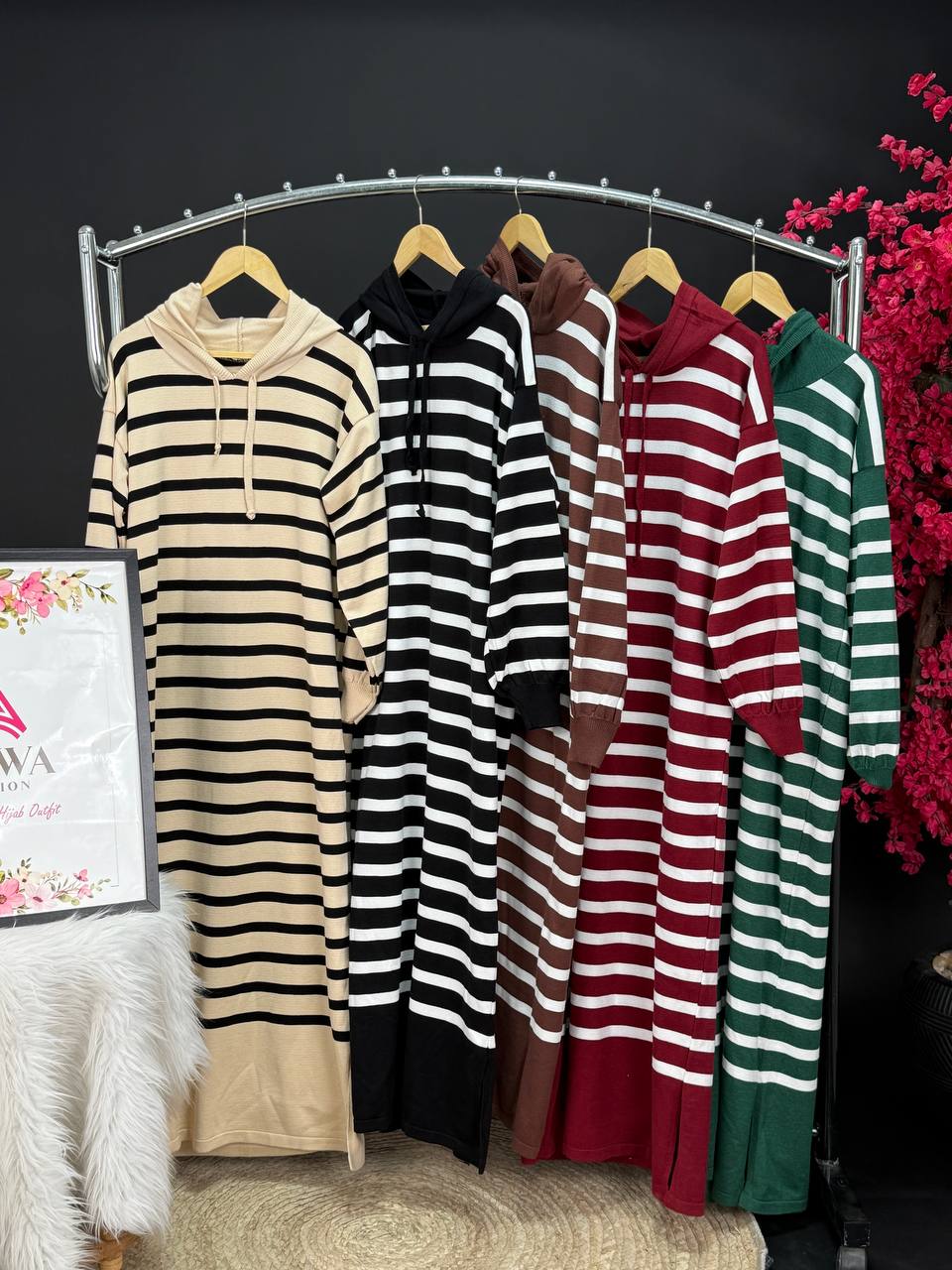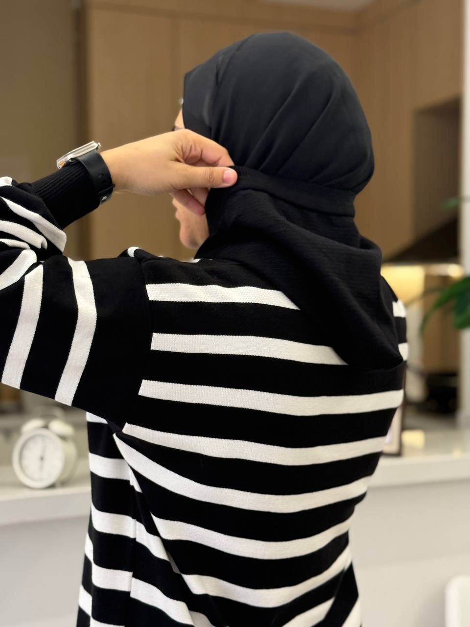 وصفة الموديل : فستان بيزك يحتوي علي كابيشو متصل و عملي مريح جداً بلبس