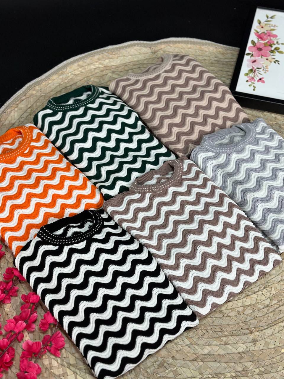 وصف المنتج: بلوفر هاف كول شكل زجزاج واسع ويأتي بألوان شتوية وعصرية
